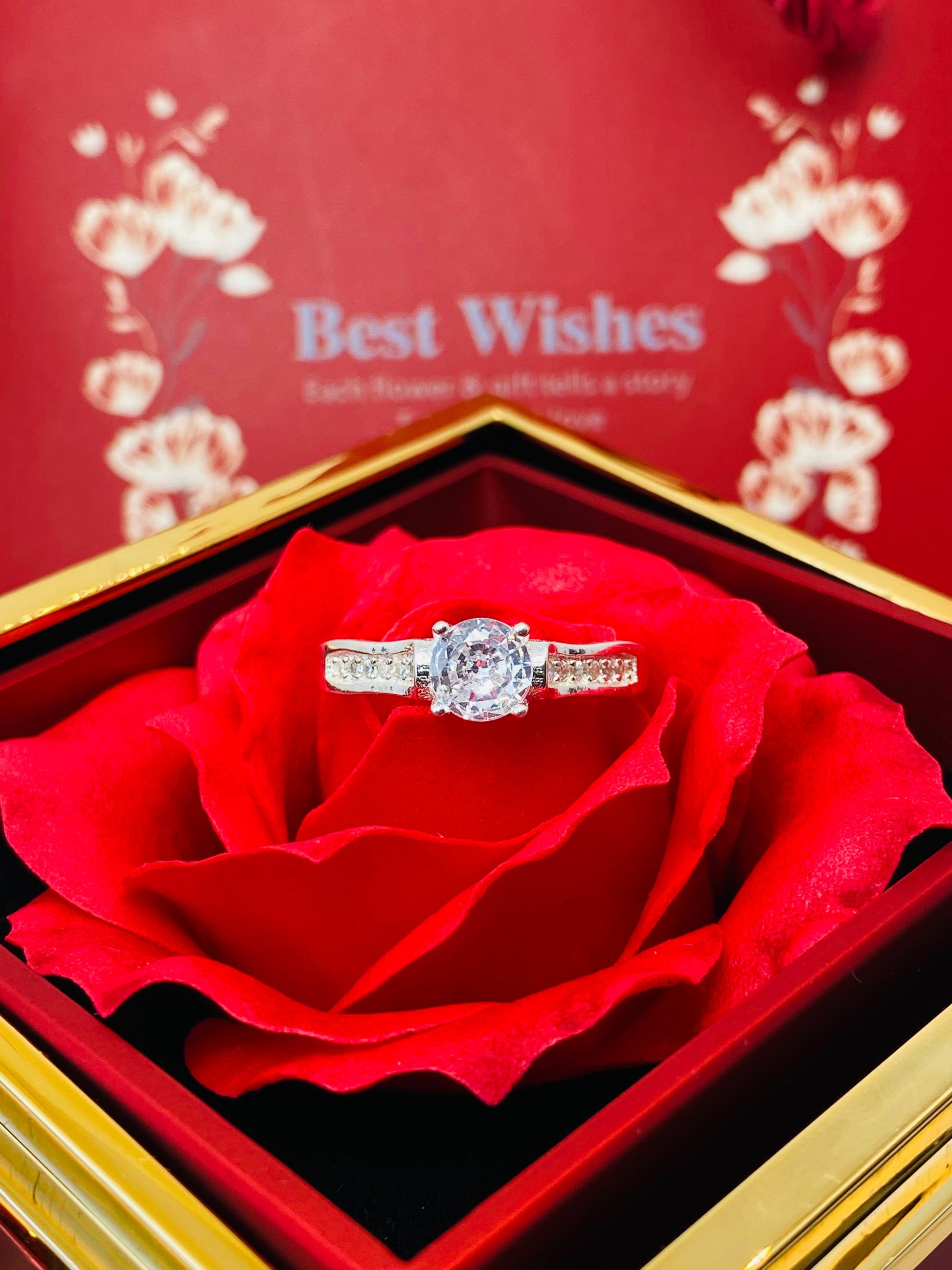 The Eternal Grace Ring is a timeless piece of jewelry crafted with elegance and sophistication. Featuring a sparkling solitaire stone at its center, this ring is enhanced by intricate side designs along the band, adding an artistic touch to its overall beauty. Made with high-quality materials, the ring combines a classic solitaire setting with delicate detailing, making it an ideal choice for engagements, anniversaries, or special gifts. This piece symbolizes elegance and commitment, capturing the essence of love and grace