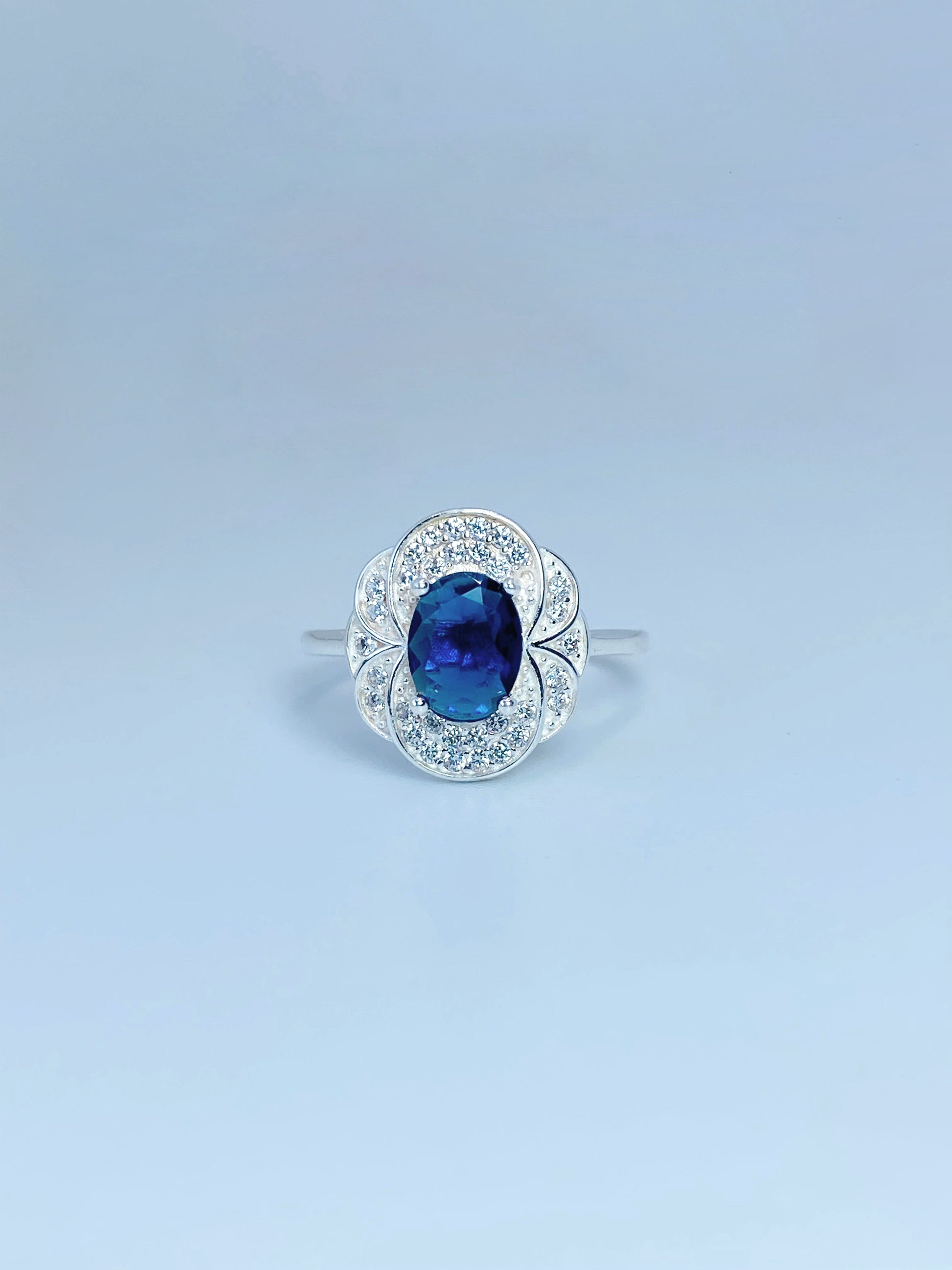 Ω Featuring two stunning gemstones with a captivating play of deep blue and violet tones, this ring symbolizes elegance and charm. The delicate craftsmanship on the sides enhances its luxurious look, making it perfect for special occasions or daily wear. Its floral-inspired design adds sophistication and grace to any style, making it a treasure for jewelry lovers